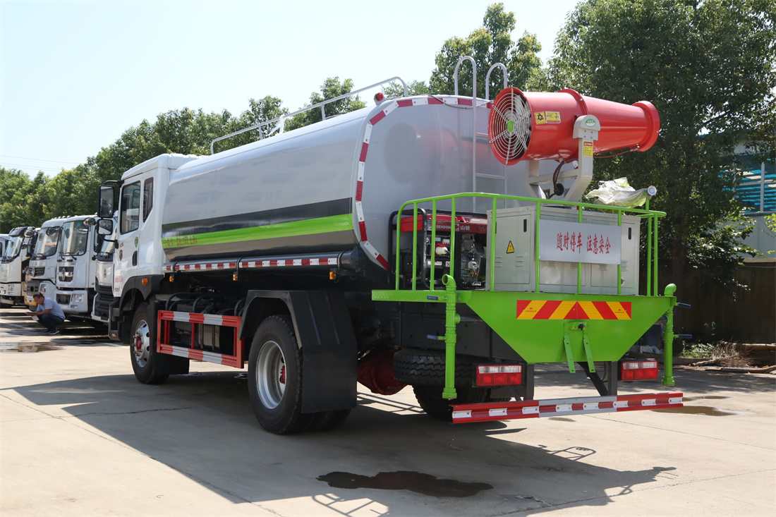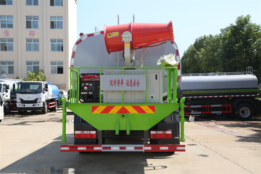 上裝配置:罐體容積 12-15立方,風(fēng)送式霧炮機(jī)組30米,40米選擇,罐體采用國標(biāo)Q235碳鋼材質(zhì),罐體厚度4MM,前后封頭5MM加厚型,罐體內(nèi)雙層隔板具有防波蕩作用,以減輕汽車行駛時罐內(nèi)液體沖擊;灑水車整車及外形尺寸嚴(yán)格按照**機(jī)動車公告制作而成;裝配大功率專用灑水泵,前沖、后灑、側(cè)噴、后平臺帶綠化灑水炮,灑水炮可全方位旋轉(zhuǎn),可連續(xù)調(diào)成直沖狀、大雨、小雨、毛毛雨;配消防接口,自流閥,濾網(wǎng),帶自吸自排功能。前封頭帶水位計(jì),后平臺主管路帶1寸澆花接口,后爬梯,帶1個消防接頭,帶1個自流閥,1個過濾裝置,其余標(biāo)配。